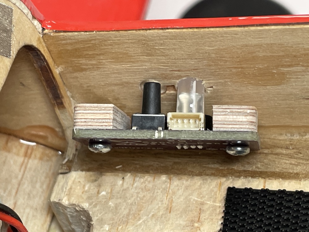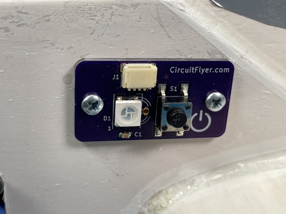 The Control_Panel version for external mounting uses a low profile addressable LED and shorter pushbutton switch. Installation is straight forward as the PCB can be mounted with velcro or using the included #2 x 3/8” screws. Hint: for better grip, use a drop of thin CA glue to ‘harden’ the threaded holes when screwing into soft balsa wood.
