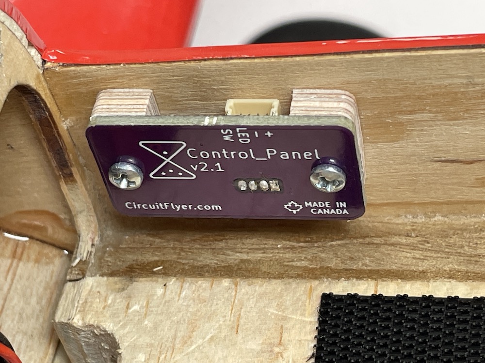 Leave the plywood spacer blocks attached to the PCB. Position the Contol_Panel assembly in place and glue the face of the spacer blocks to the inside wall of the fuselage.