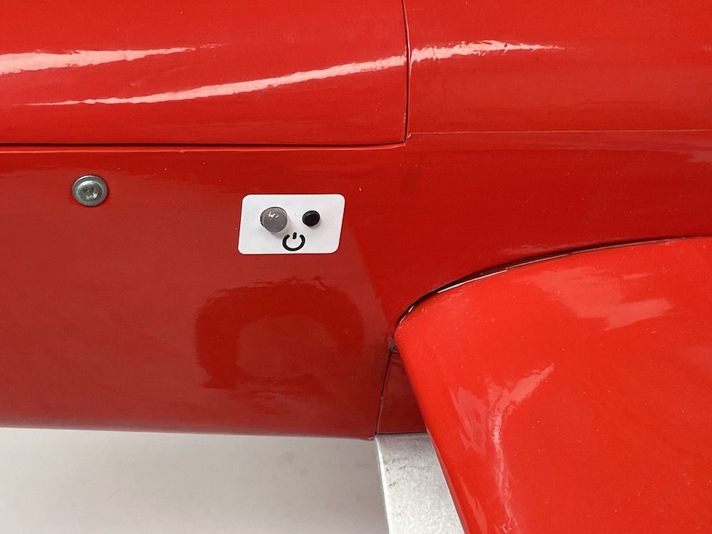 Clean the outside surface of the fuselage around the switch and LED. Carefully align and apply the vinyl label for a clean appearance.